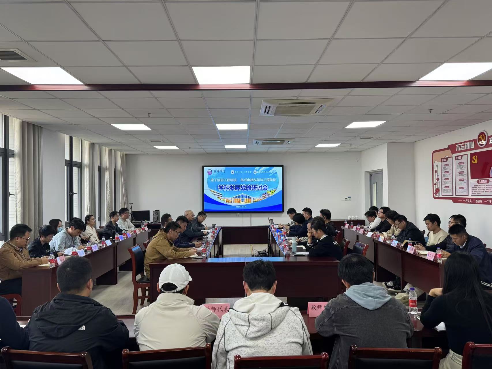 11月13日下午,电子信息工程学院和集成电路科学与工程学院在思贤楼512会议室联合召开学科发展战略研讨会,副校长胡剑凌出席会议,院长郭业才,常务副院长常建华,党总支副书记张健、副院长王伟,学院副高以上职称教师与部分青年教师代表参加研讨会。会议由郭业才主持。