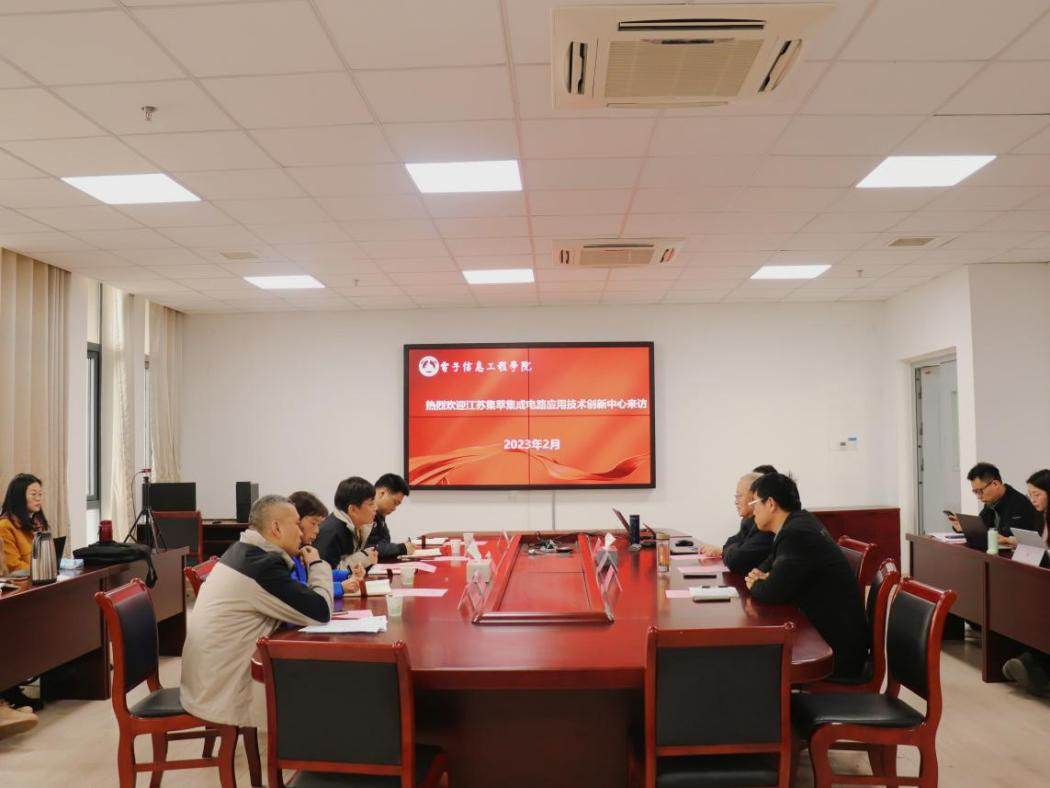 2月17日上午,江苏集萃集成电路应用技术创新中心(简称创新中心)副主任戚运东、业务总监贺昕、高级业务经理胡佳欢、高级业务经理蒋吉明等一行来电子信息工程学院交流洽谈,电子信息工程学院院长郭业才、副院长王伟等出席交流活动。