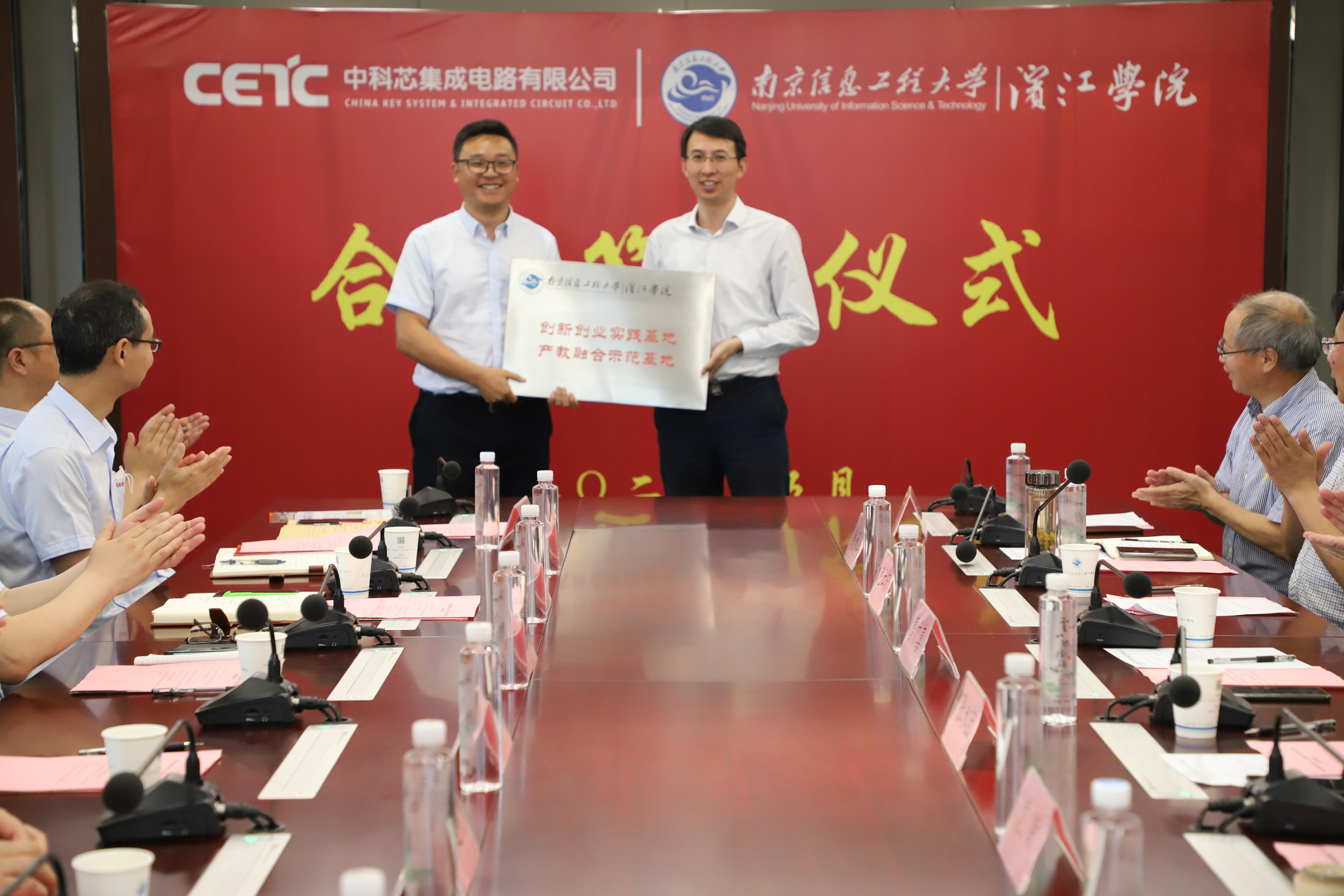曹广喜院长为南京信息工程大学滨江学院中科芯创新创业基地授牌。